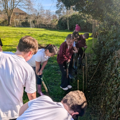 On Tuesday 17th and 25th March, our Year 3 and 5 children enjoyed a fantastic Hedging Day with Olivia Williams from Dunsmore Living Landscape, helping to celebrate the new hedging recently planted around parts of our school perimeter with funding from Warwickshire County Council. The day gave pupils a wonderful opportunity to learn more about how hedgerows support wildlife, protect the environment and help make our school grounds even more sustainable and eco-friendly. It was a great hands-on experience, full of learning, teamwork and fun, and a lovely way for our children to see how small actions can make a big difference to the world around them.