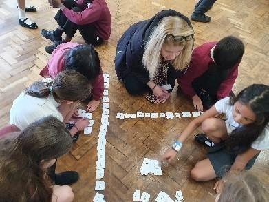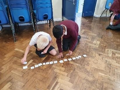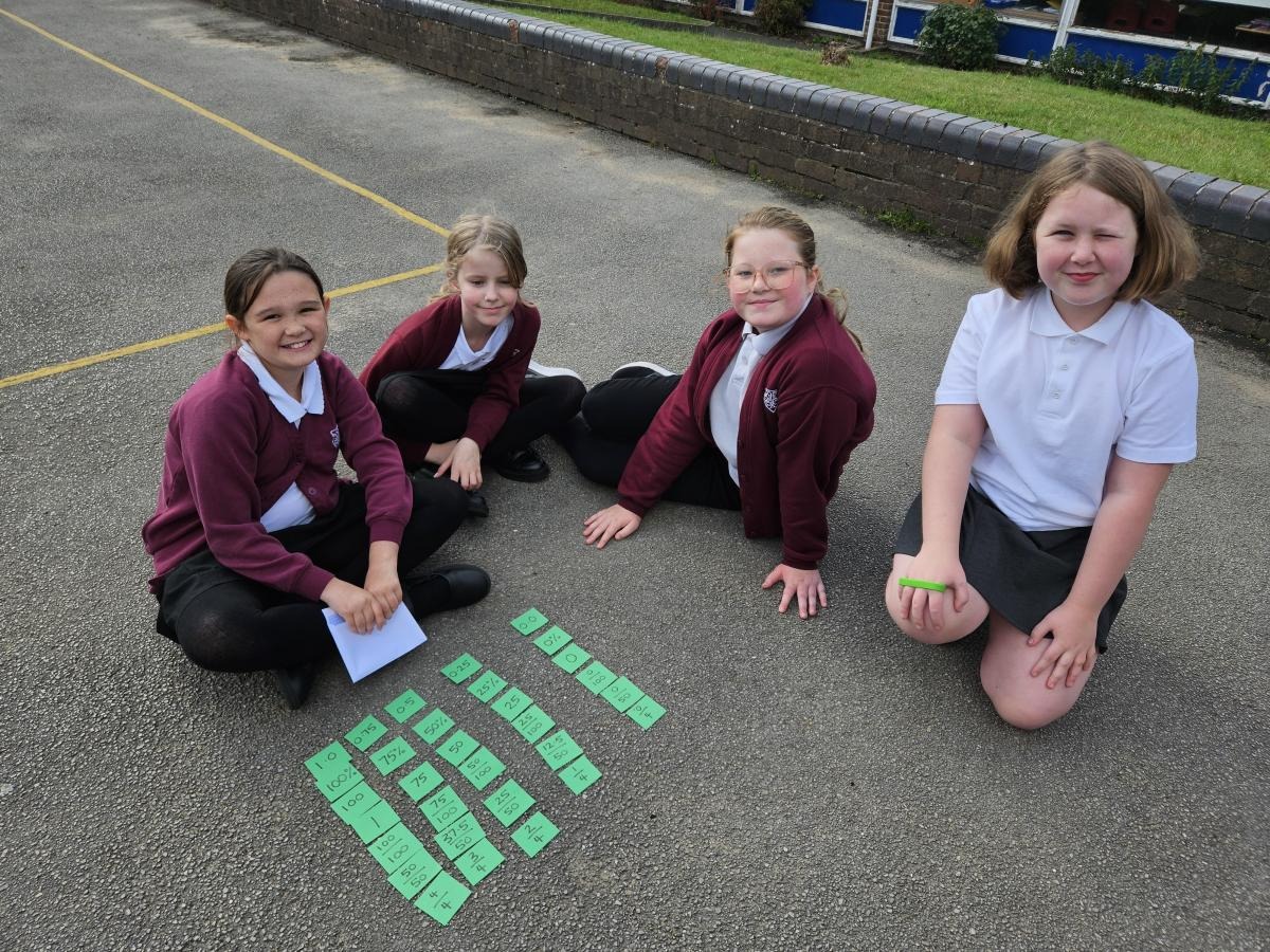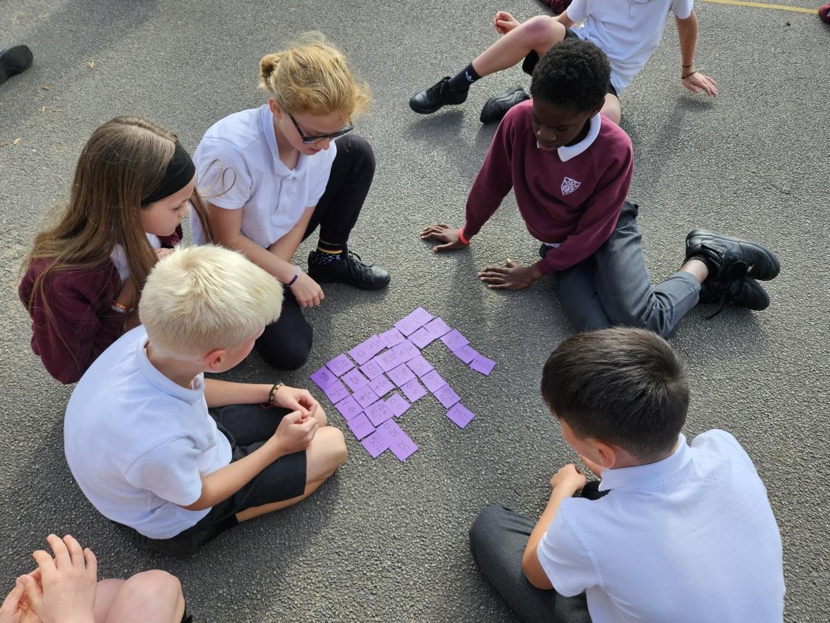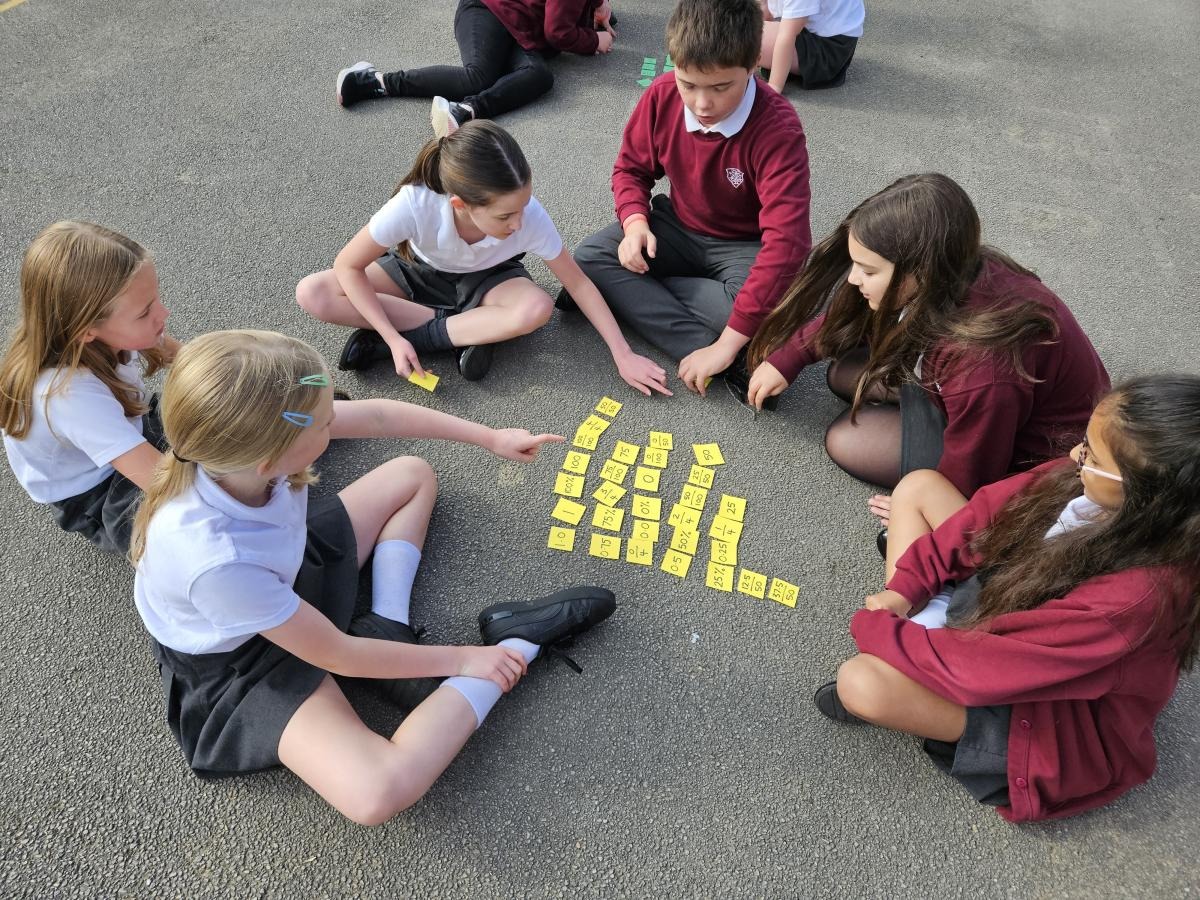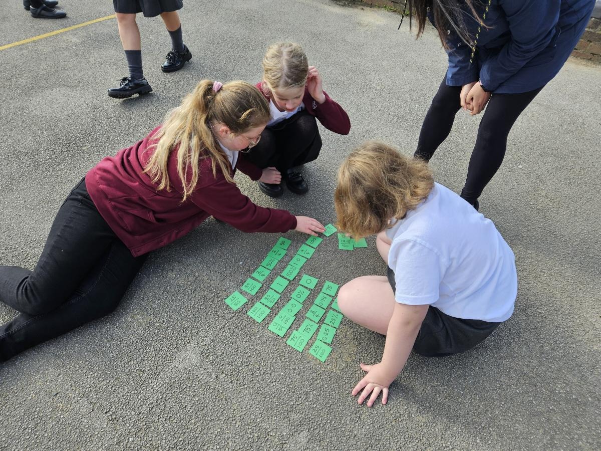 Year 6 did an active maths lesson, where the children worked in teams to collect individual cards from the other side of the playground and bring them back to their team. The team then had to organise them whilst taking it in turns to collect all the cards.