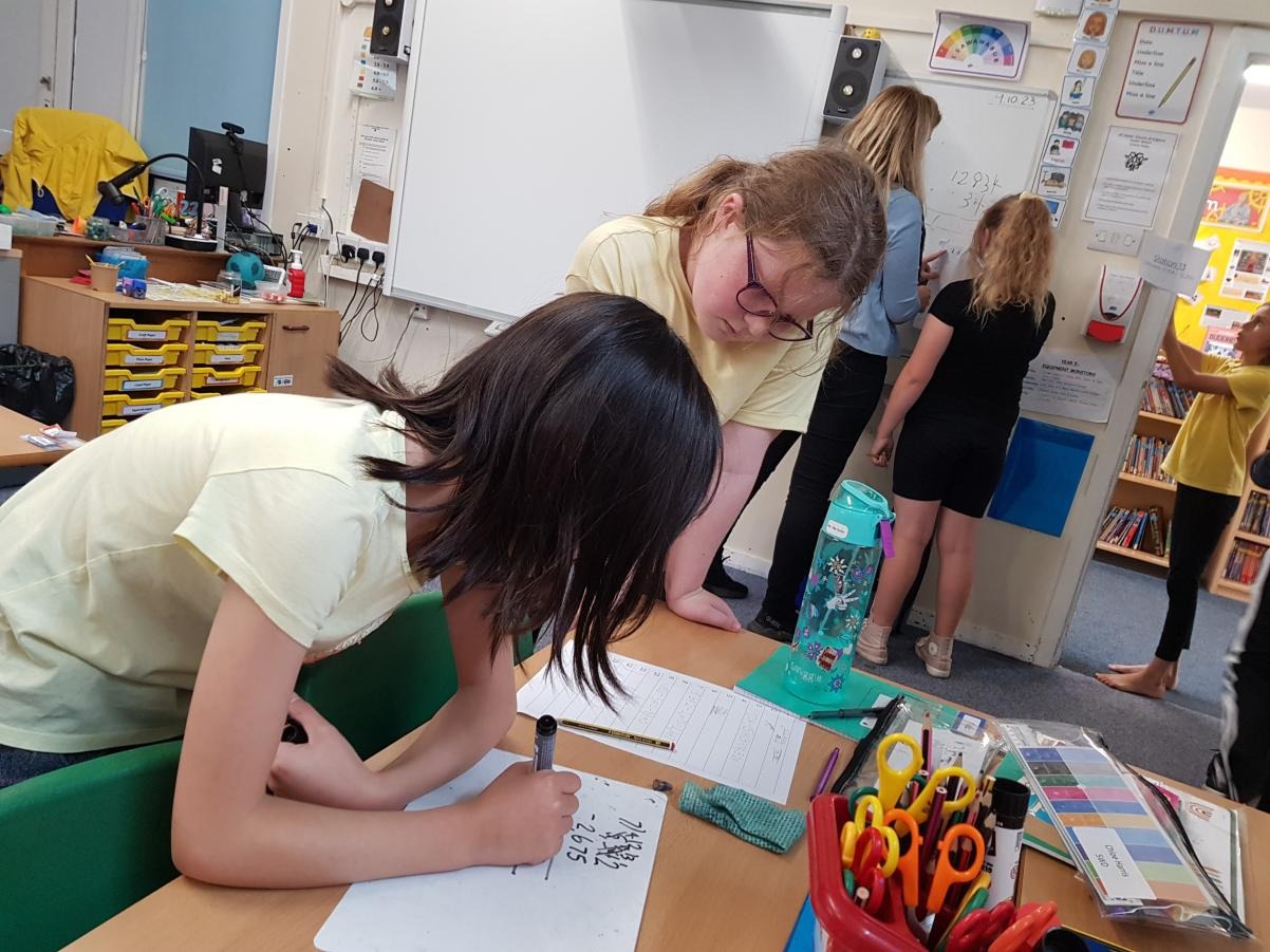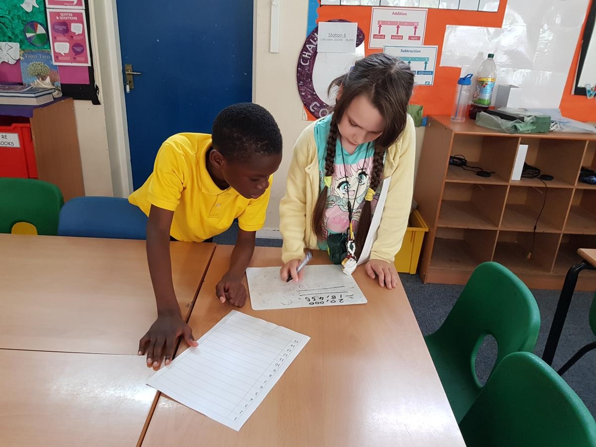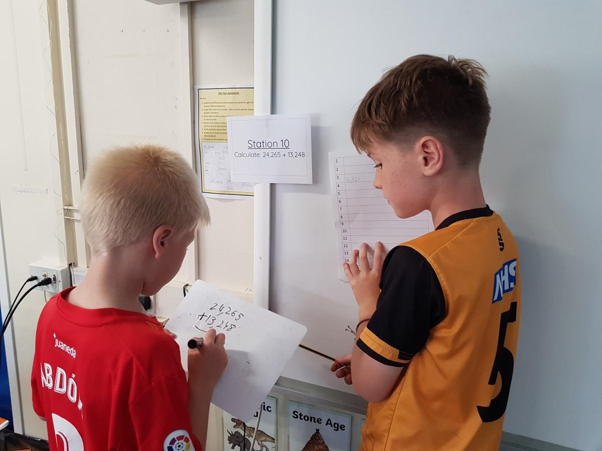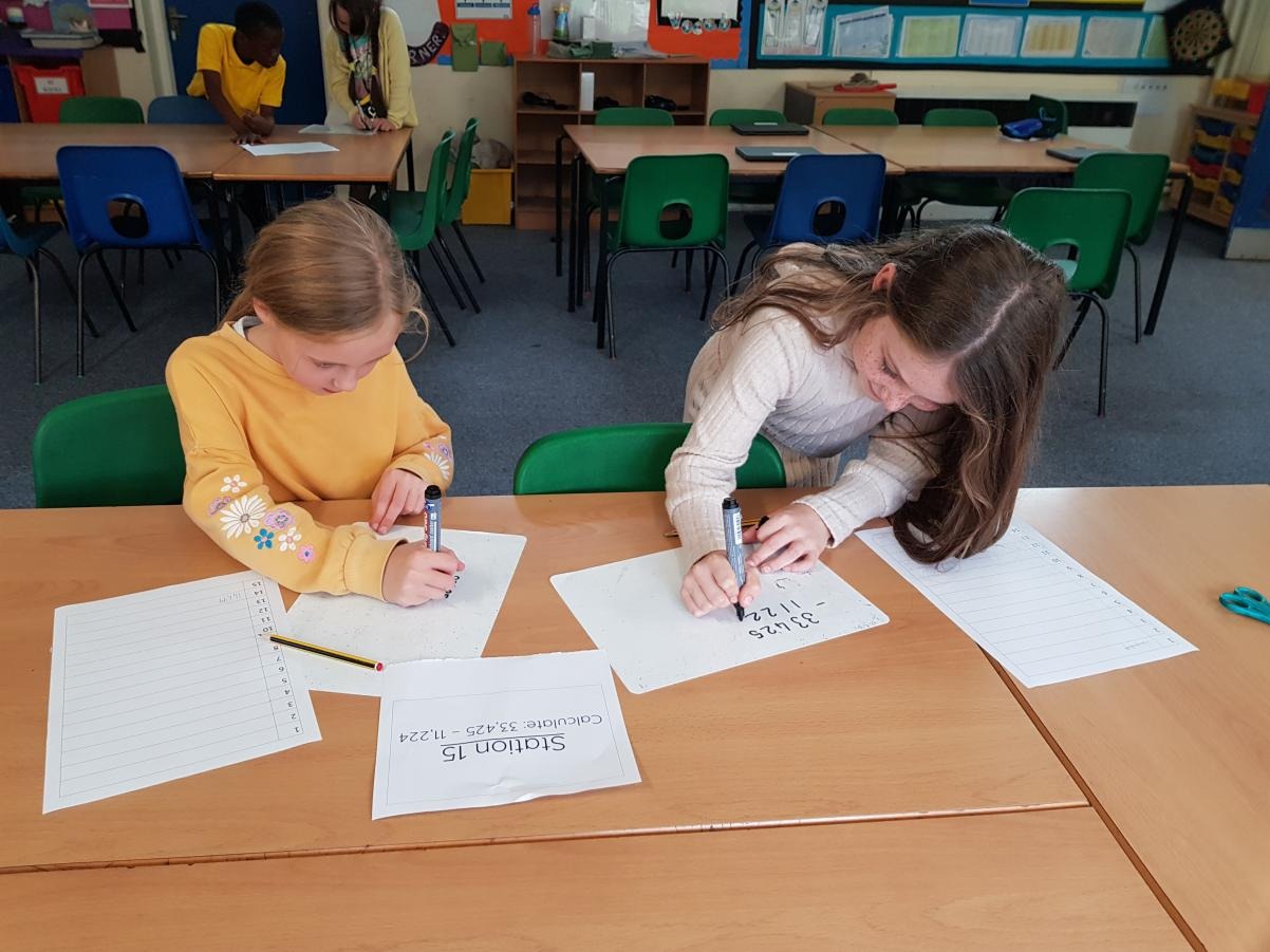 After expanding on their skills when completing formal written methods, the children were challenged to find 20 different calculations hidden around the year 5 area. Once they found them, they had to complete the calculations and get their partner to check it before moving onto the next question (these could be completed in any order). These calculations involved addition, subtraction, multiplication and division. They included up to 5 digits, decimal places, money, weight and length.