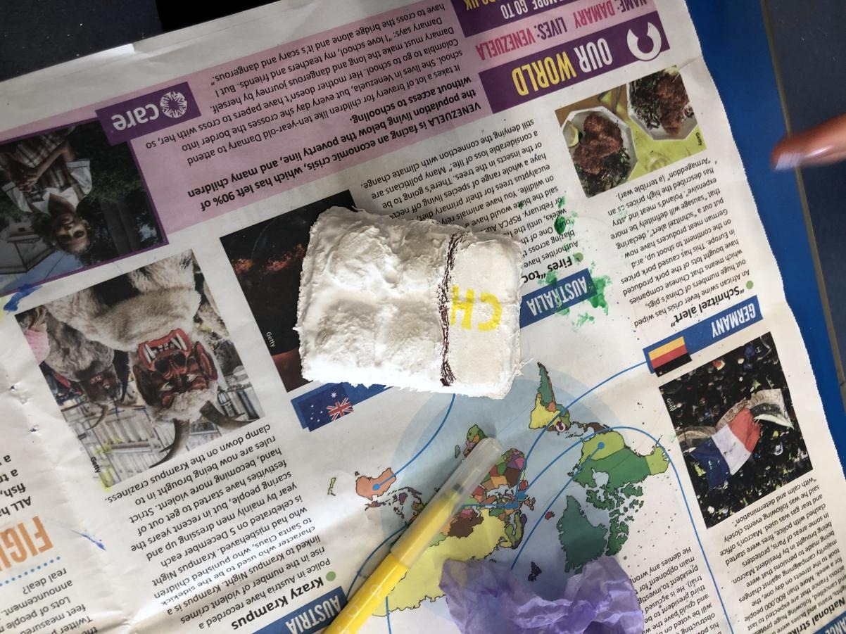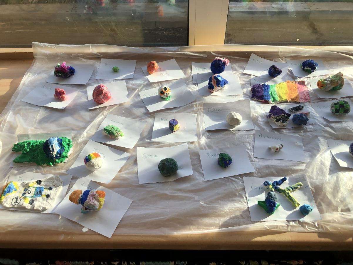 The Year 6 children have been developing their design techniques. After creating their prototypes for their gas masks, they have been experimenting with the material of mod-roc. This week, they tested several techniques for decoration, including crayons, felt-tips, tissue paper and paint. After testing each technique, the children then evaluated how well each one worked on the dried mod-roc, the testing of each technique will be used to determine ways of decorating their finished gas maks. Next week, we will be starting to create the base for our masks.