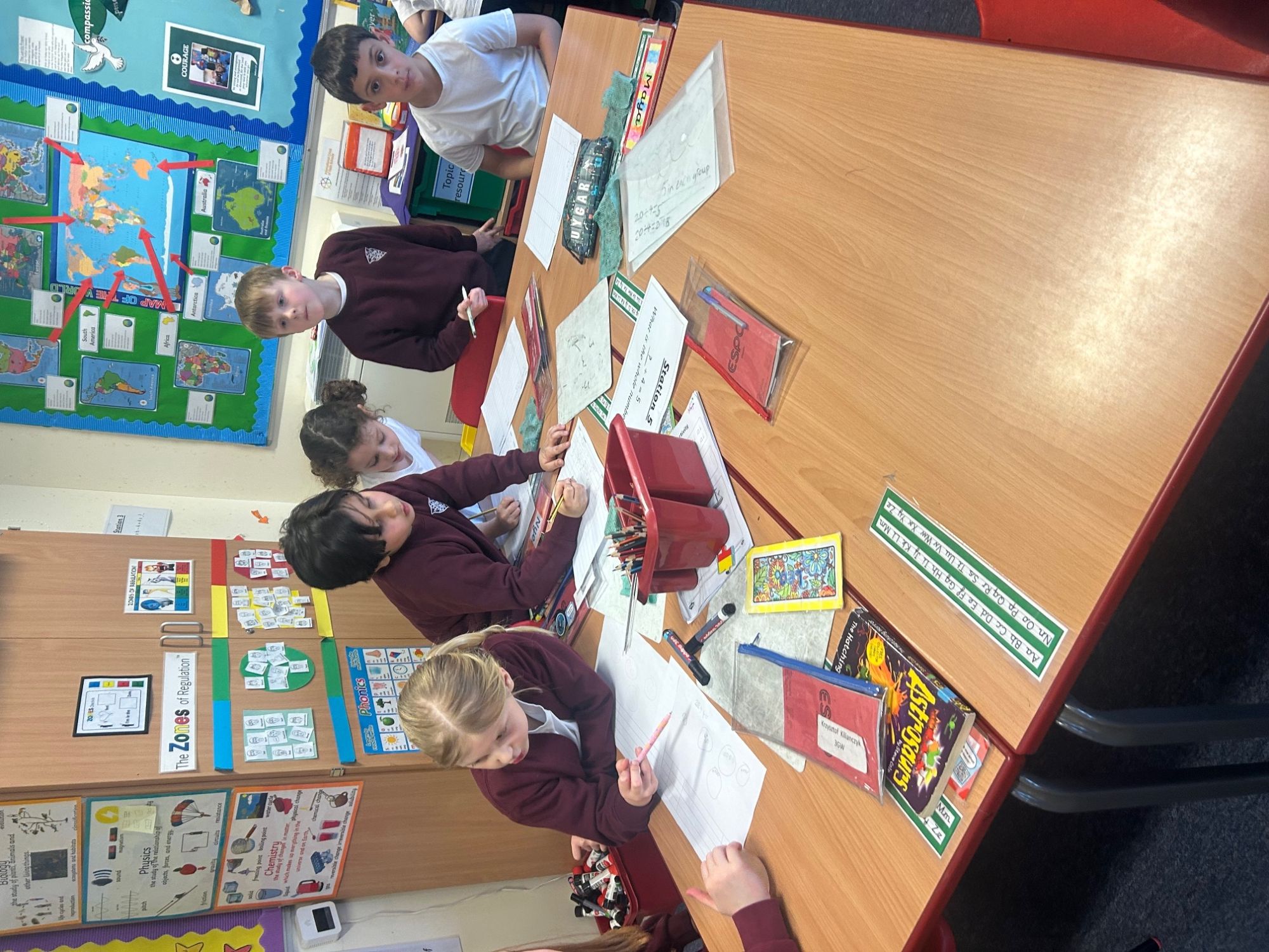 In Maths, while learning to multiply and divide by 3, 4 and 8, the children took part in an active and engaging lesson. Working in pairs, they moved around the classroom to complete 15 different problem-solving stations, each involving division by 4. After solving each question, their answer guided them to the next station. This practical approach allowed the children to apply their division skills while working collaboratively. The children had a fantastic time and really enjoyed learning through movement and teamwork.