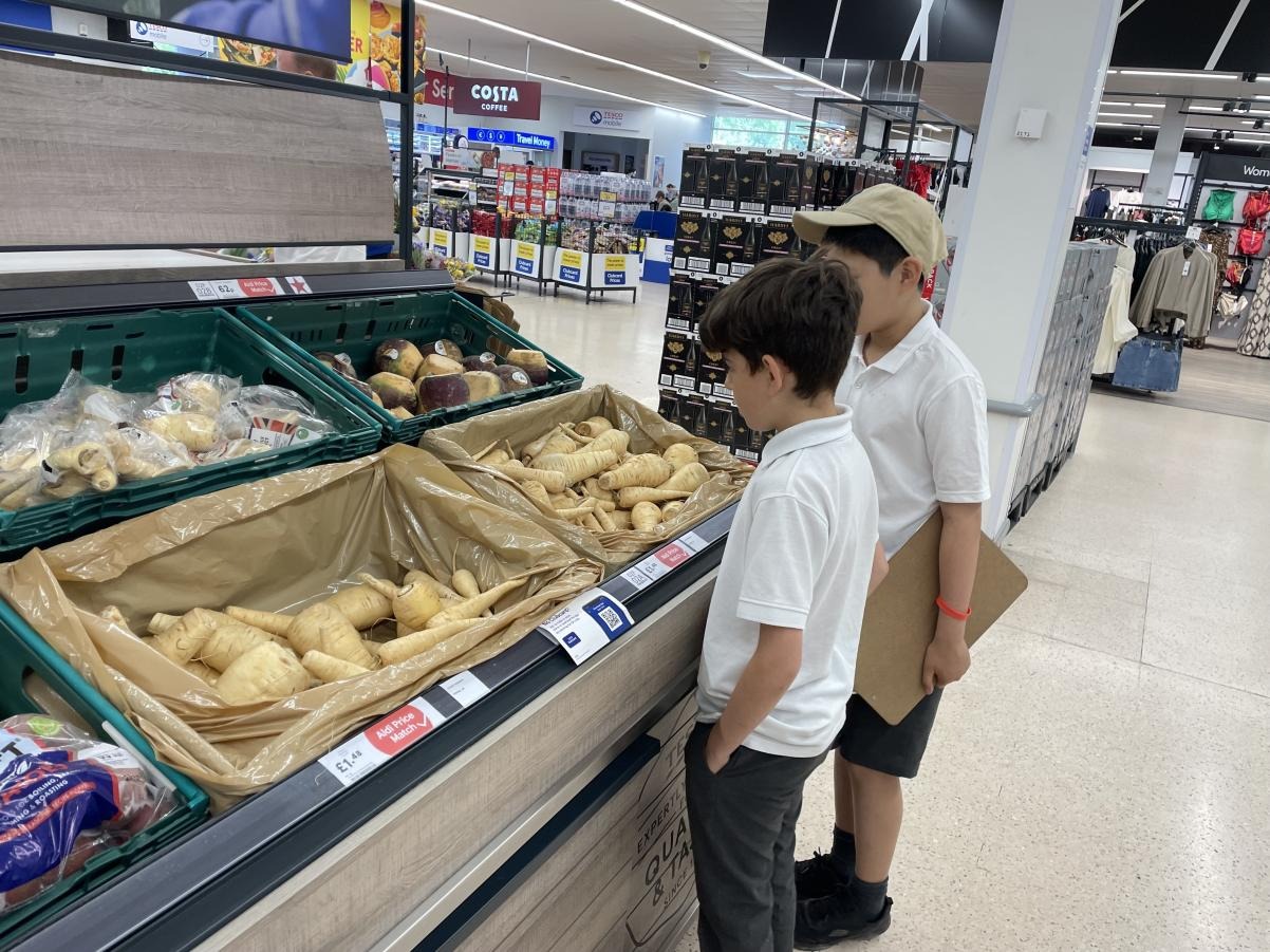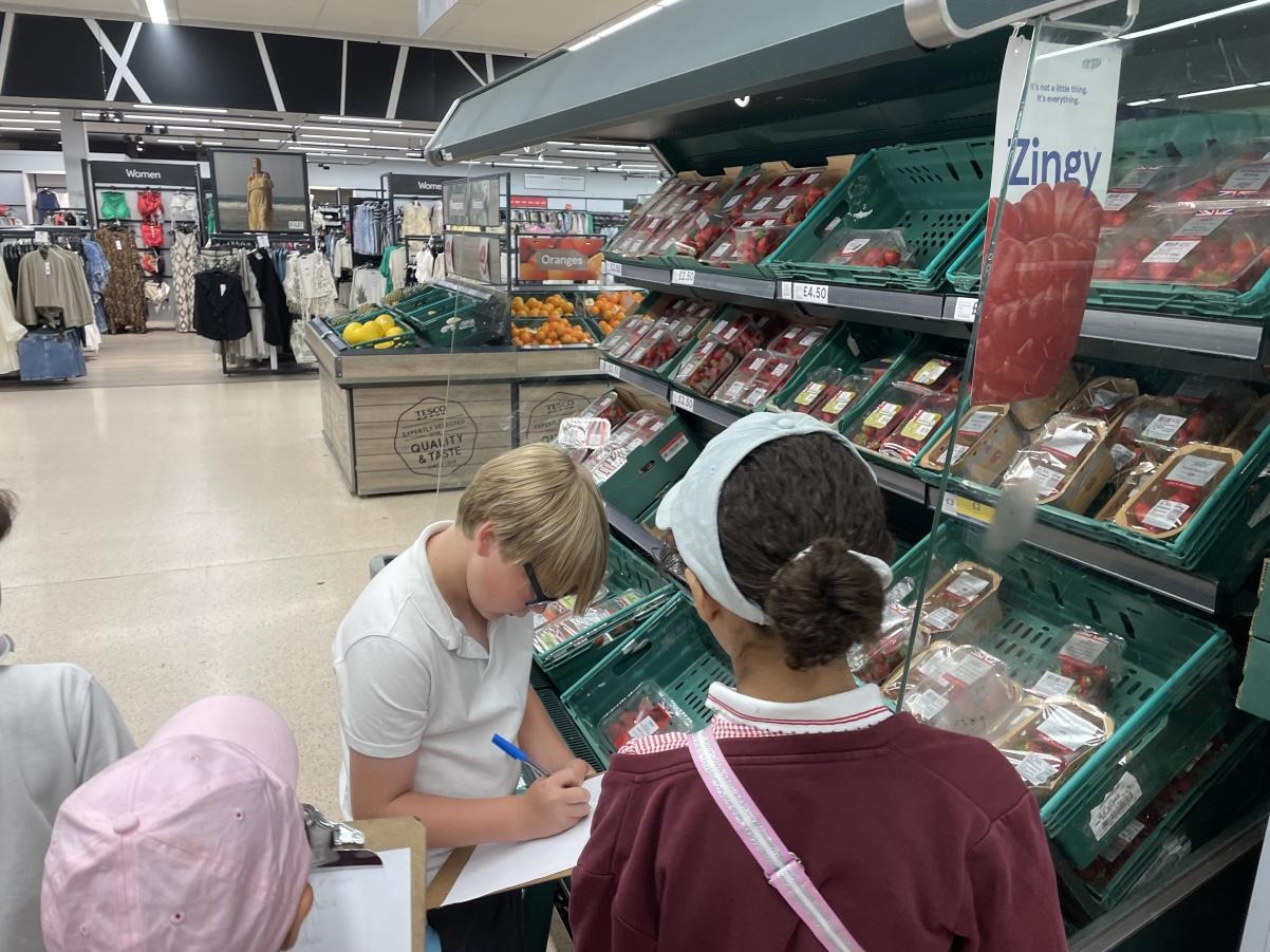 Year 5 went to Tesco as part of our geography fieldwork last week. The children met the manager of fresh produce and gathered data on the country of origin of fruit and vegetables. The next stage is to plot this data on a world map and research food miles. The children will then consider how we can behave more sustainably when considering our shopping choices.