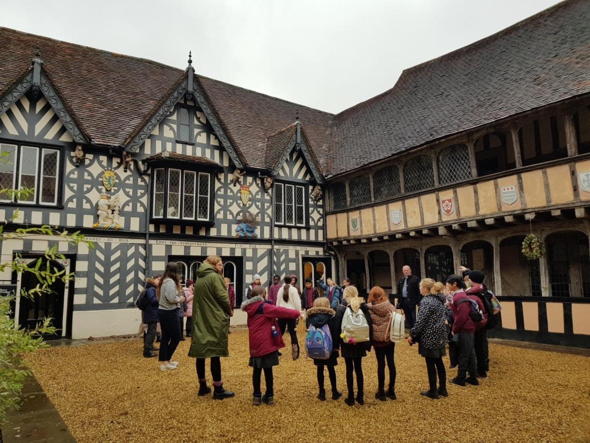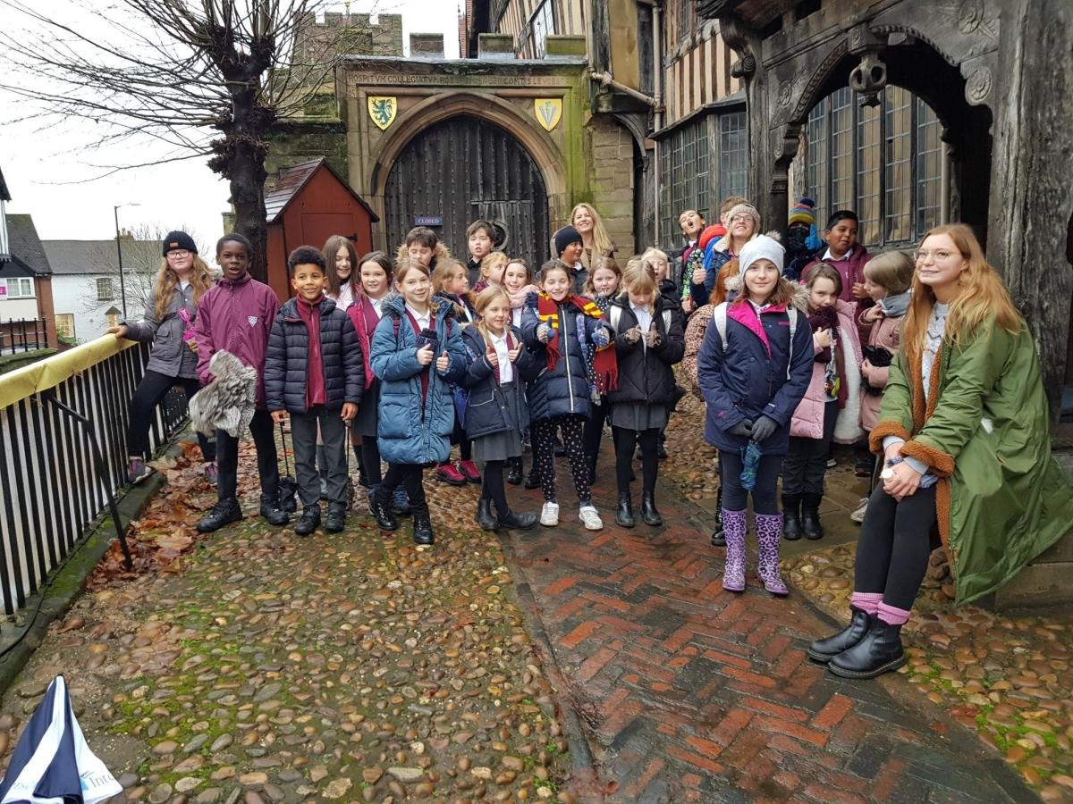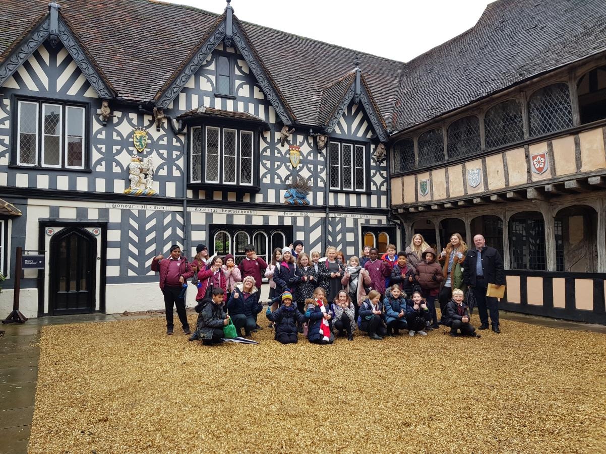 Year 5 were lucky enough to be the second school ever to go to the Lord Leycester Hospital on a school trip. We learnt about the history of the building including where the word ‘boss’ originally comes from because of the ‘boss’ on the ceiling. We had a go at designing our own ‘boss’, thinking about what is important to us and what we would want on it. We also talked about the job of the Guild Master and the important role they played in society.