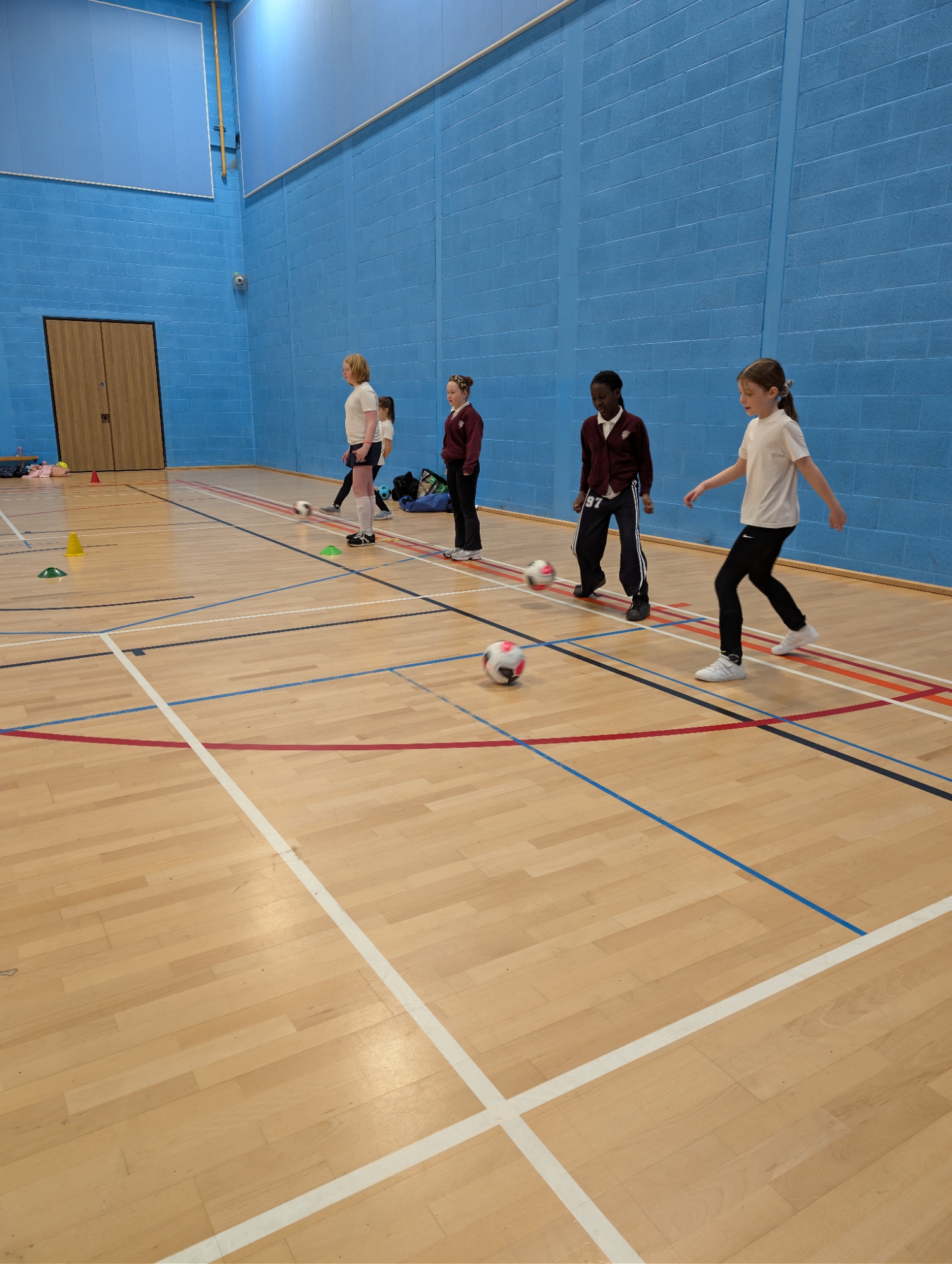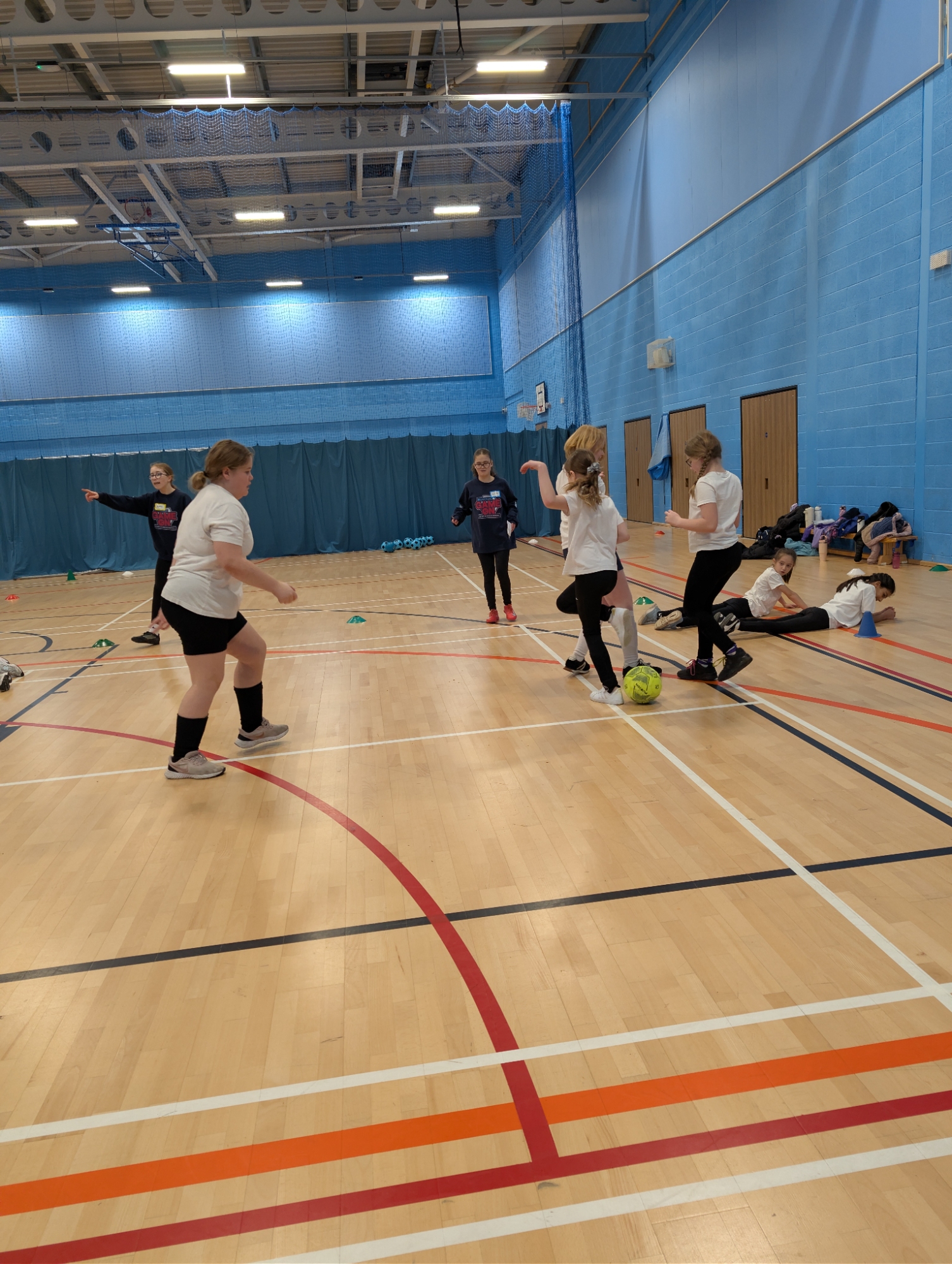 On Tuesday, 20th January, 10 girls from years 5 and 6 went to Newbold Comyn Leisure centre for a football festival. The girls took part in skills session as well as a couple of games against other schools. There were some year 8 and 9 students from Campion secondary school who were coaching all of the girls. Even though most of the girls who went to the event weren't really footballers, they all had a brilliant time, and really got involved with all aspects of the event. Some even scored their 1st goal. The girls showed great team work and were fantastic advocates for our school.