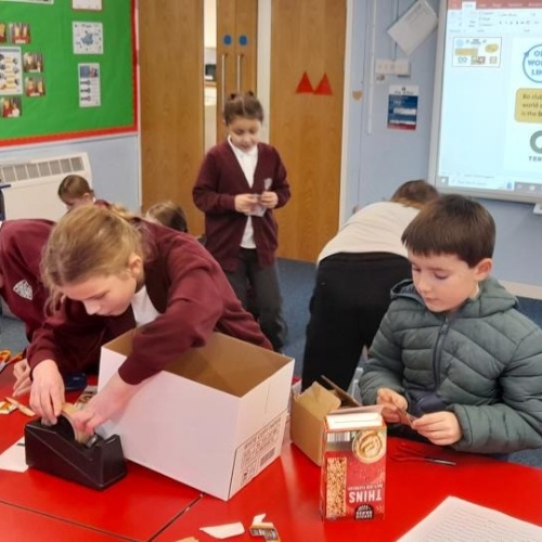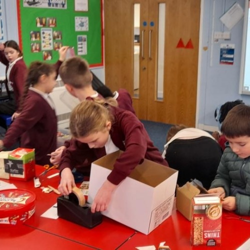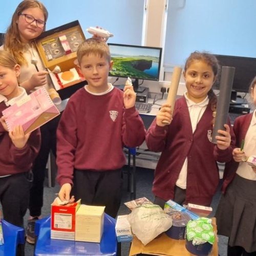 This term we have had fun making things by re-using what would otherwise be thrown away, making musical instruments and Artwork. We are also collecting lots of different materials to send off to TerraCycle recycling projects; crisp packets, old pens and old glue-sticks.