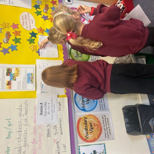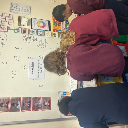 In Maths, while learning to multiply and divide by 3, 4 and 8, the children took part in an active and engaging lesson. Working in pairs, they moved around the classroom to complete 15 different problem-solving stations, each involving division by 4. After solving each question, their answer guided them to the next station. This practical approach allowed the children to apply their division skills while working collaboratively. The children had a fantastic time and really enjoyed learning through movement and teamwork.
