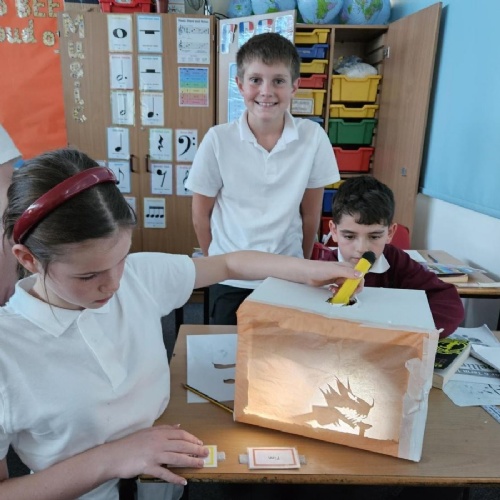 In year 6, our current science topic is light. The children have been establishing the best arrangement of a light source as well as the position of an object to create a shadow puppet theatre. They were all really creative with their ideas and very much enjoyed experimenting with different paper transparency to create the best effect.